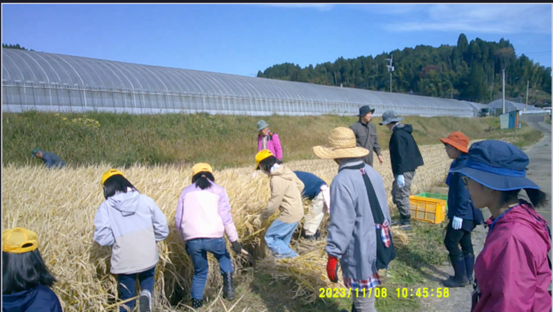 昨年より人数は減り、田んぼの面積は大きいのですが、今年は短時間ですべてやり遂げました。開会で言った「収穫米は給食で食べるよ」の一言が効いたのかもしれません笑笑