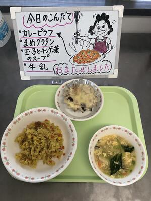 「まめグラタン」は、3年生が「まめだけ、残そうかな・・・」と献立表を見てつぶやいていました。