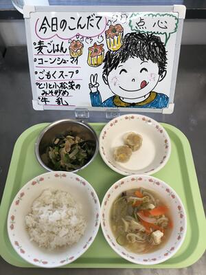 今日は、デザートに「こいのぼり」ならぬ「たいやき」が出ました。