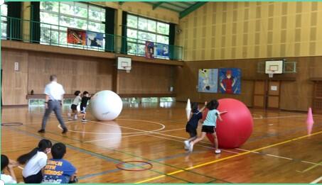 全校遊び・・・運動会種目「大玉転がし」を競いました。