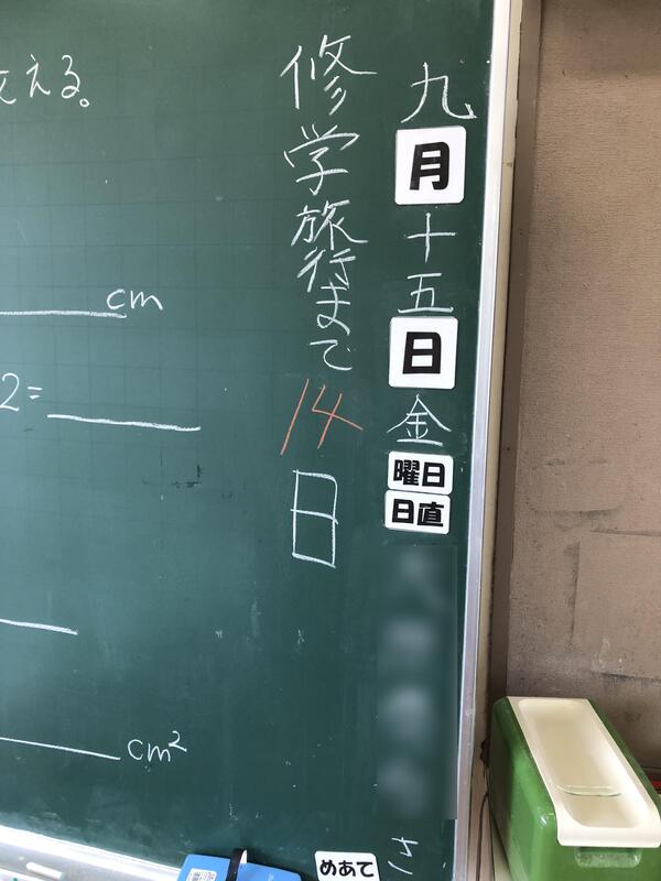 6年教室前面黒板には修学旅行までのカウントダウンが書いてあります。
