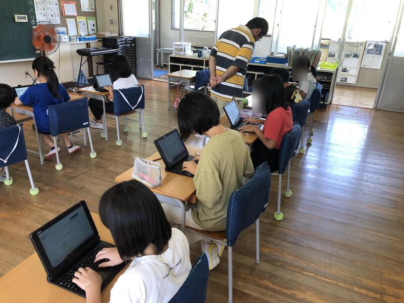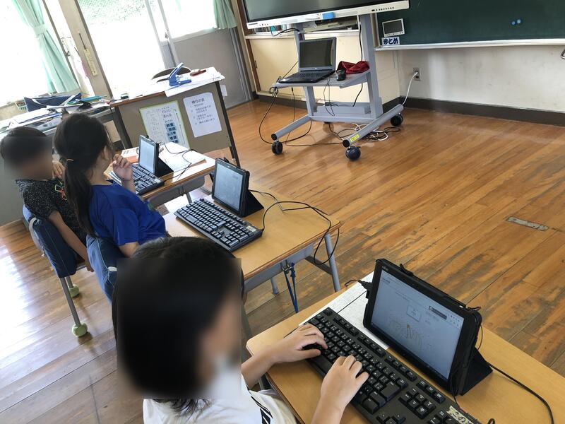 4年生は、ことわざをローマ字入力していました。長いことわざが全てひらがなで書いてあるので