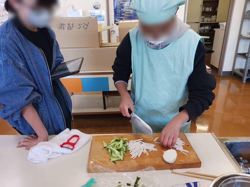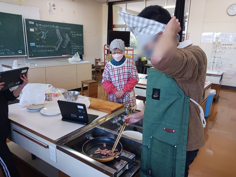 2・3時間目6年生は家庭科の授業。今日は、地域学校協働活動推進員・渡辺さんにもゲストティーチャーで来ていただきました。