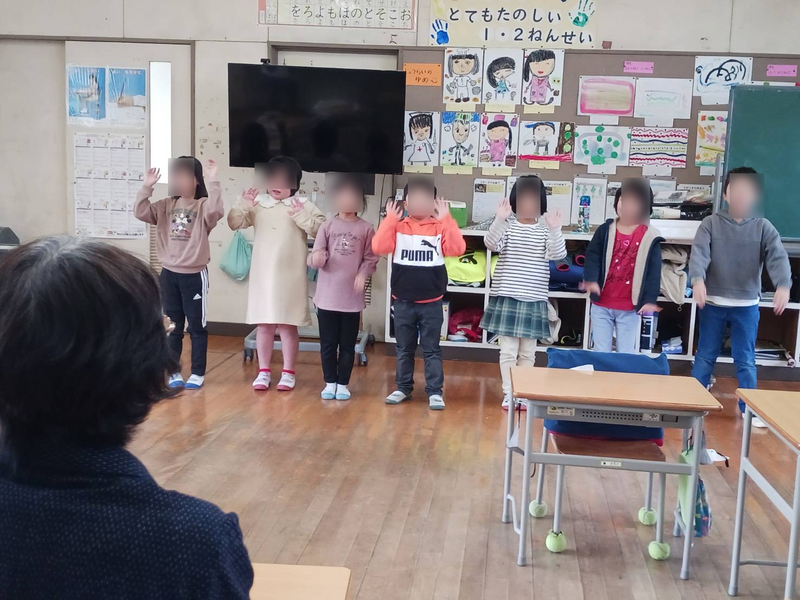 最後に子どもたちから感想発表。今回は読み手が担任の先生だけに、すべて1年生からの発表でした。