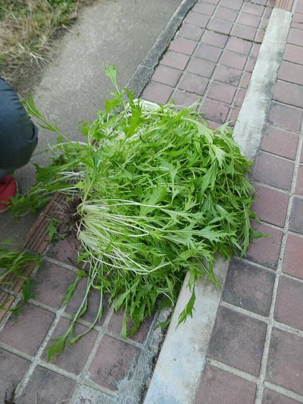 Yさんの水菜にアオムシがついていたのを、Hくんが取っていました。無農薬のおいしい水菜です!