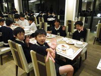 夕食は、4階と5階のレストランに分かれて食べました。その後、班長会議をして班で反省会をし、明日に備えました。今日は、フィールドワークをするなどアクティブに活動したので、ぐっすり眠ることができるでしょう。おやすみなさい。