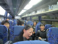 バスの中では、サザエさんのエンディングやカンナム・スタイルなどを「お笑い係」が曲に合わせて踊ったり(シートベルトをしてきちんと座っていますが・・・・)、ガイドさんが用意したゲームをしたりして盛り上がっています。
