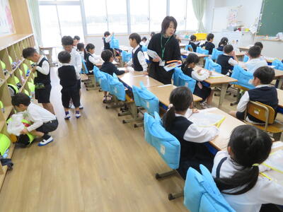 きょうは、今年度最後の読み聞かせの日でした。きょうは、今年度最後ということで、1年間の感謝の気持ちをお手紙にして、ボランティアの皆様にお渡ししました。ボランティアの皆様がとても喜んでくださったので、子どもたちもうれしそうでした。読み聞かせのおかげで本に親しむ子どもたちがどんどん増えており、学校全体の読書冊数も昨年度より増えています。本当にありがとうございます。最後になりましたが、この読み聞かせボランティアを中心となって運営してくださった地域学校協働活動推進員の箕輪さんに心より感謝申し上げます。来年度もどうぞよろしくお願いいたします。(主幹教諭 濱坂 由紀美)