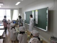 各学級で、給食当番の児童が早めに準備して、先生たちの指示をしっかりと聞いて、給食の準備をしていました。