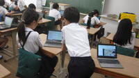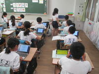 授業中もタブレット操作に困っている友達に自主的に寄り添い、アドバイスする4年生の姿も多く見られました。