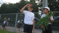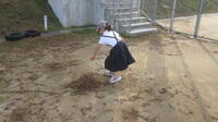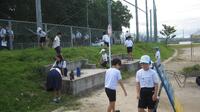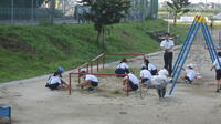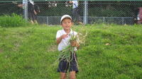 今日もかわいい子どもたちが、残っている草取りに来るかもしれないと戦闘服(ジャージ)に着替え、運動場へ・・・