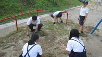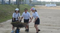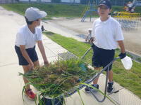 青々していた運動場の雑草たちが、今まで毎朝の草取りボランティアチーム(自由参加)と環境ボランティア委員会のクリーン大作戦の成果もあり、随分減ってきました。