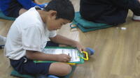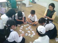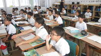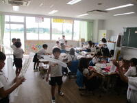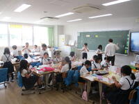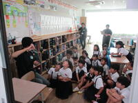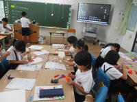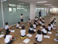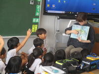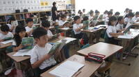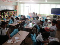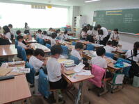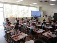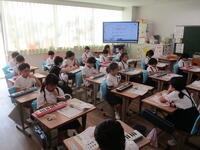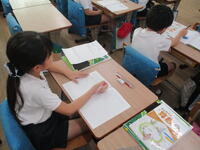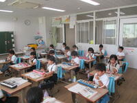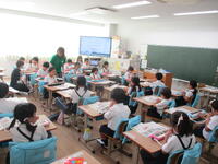 夏休みが明け、教室にはたくさんの子どもたちが!楽しそうに先生の授業を受けていました。1年生は、夏休みの思い出を発表しました。私にも・・・「大きなプールにいったよ。」「水族館にいった!」「魚釣りにいった」などなど絵日記を見せながら教えてくれました。楽しい夏休みだったようです。