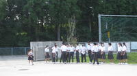 児童が80名程度、保護者や地域の方も15名程度こられ、ラジオ体操第1と第2を続けて行いました。全てライブなので午前6時30分開始です。