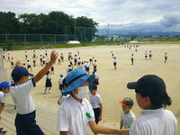 今は、子ども会がない地区もあり、年々ライブでのラジオ体操実施が減少してきているところにこのような地区の活動を見ることができて、児童は地域に支えられている大きな一つだなと感じ、身体も心も嬉しくなったひとときでした。児童・生徒は挨拶もしっかりしてくれました。最後にお話をさせていただき、「朝を制するものは、1日を制す 夏を制するものは、1年を制す」という話をさせていただきました。(教頭 上田 玲子)
