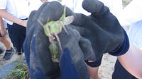 テニスコートまでの芝生をとることができたら、一旦終了しましょうかね。・・・先は長いかも・・・(教頭 上田玲子)