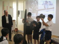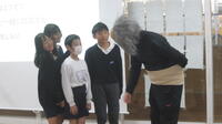 児童は対応のコツを押さえて、上手におじいちゃん役の宮田先生に対応していました。認知症の方に限らず、誰に対しても応用できるコミュニケーションの取り方ですね。(教頭 上田 玲子)