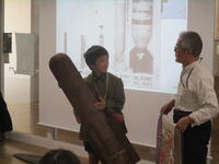 当時の飛行服やモンペなどを着たり、当時の状態で保存してある「航空機のプロペラや車輪、焼夷弾や照明弾」などに触れたりすることができました。
