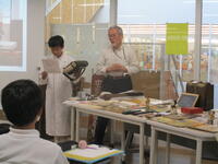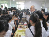 講師である三代目の立山学さんは、全国的に有名な工芸菓子職人です。本日は、子どもたちの前で、花や景色を表現した季節感のある上生菓子を熟練の手つきで、一つひとつを丁寧に作り上げ、子どもたちからも驚きの声が上がっていました。(校長 佐藤 政臣)
