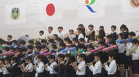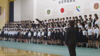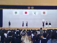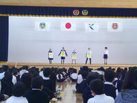 中学校から各学年、合唱コンクールで優勝した学級1-1,2-3,3-3が美しい3部合唱を披露し、吹奏楽部が3曲披露して、フロア参加型の「唱」を演奏し、4年生や中3の生徒がダンスをしながら演奏を楽しみました。