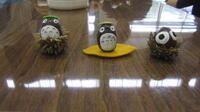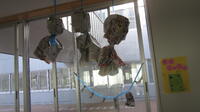 2年生の廊下に再び大きなてるてる坊主が3体ぶら下がっていました。(下には普通サイズのてるてる坊主5体)