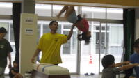 次はスローモーションバトル。決して相手に触らず、声を出さず、攻撃しているフリとされているフリをスローモーションで表現しています。笑いが止まりません・・・。