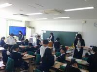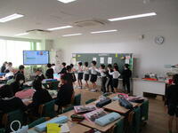 本日は、5年生に中学校の先生が家庭科を教えに来て下さいました。(主幹教諭;下山)