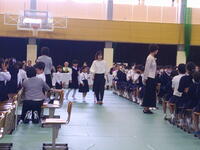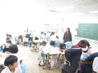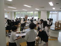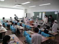 小学校と中学校が同じ校舎にあるので、中学校の先生が小学校へ。