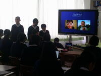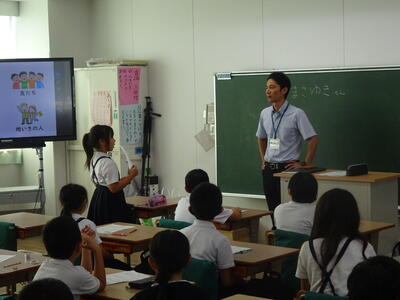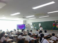 本日、5年担任の岡田先生が、中学校3年で英語の授業を行いました。