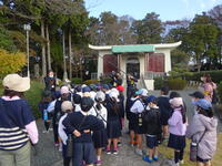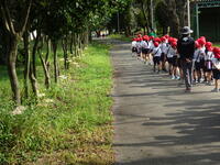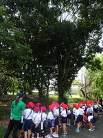 1年生が生活科の学習で菊池恵楓園の散策をしました。それぞれの通学路探検をしている中で今回は黒石原6町内の子どもたちが通学路にしている恵楓園の中を通ってみました。はじめて恵楓園に入るという1年生も大勢いました。恵楓園の中は自然がいっぱいで銀杏の実が落ちていたり、彼岸花が咲いていたりと残暑厳しい中でも秋らしさがどこそこにありました。秋が深まったらまた恵楓園で「秋探し」をする予定です。(教頭 米澤)