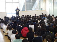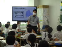 4年生は総合的な学習の時間に福祉について学習しているところですが、今日は、市内の民生委員・児童委員さんにおいで頂いて、民生委員の仕事内容についてお話しを聞きました。子ども達は、事前に民生委員に関するDVDをみて今回の学習に臨んでいます。「給料がないのにどうして民生委員の仕事をしているんですか?」という素直な子どもの疑問に民生委員の方々は「ボランティアと思ってやっている」「地域の人から『ありがとう』って感謝されれば十分」などと答えていらっしゃいました。昨今全国的に民生委員のなり手が少ないという問題を耳にしますが、すみよい街づくりのためにこのようにご尽力頂いている方には感謝の気持ちでいっぱいです。(教頭 米澤)
