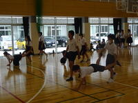 今日の「Let's楓スポーツタイム」は体育館で「スーパーハイテクノロジーハイハイ」をしました。すごい名前ですが「手押し車」というとわかりやすいでしょうか?今年度の体力テストの結果「筋力・筋持久力」に課題があったということで、それらの力がつく運動を取り入れたそうです。体育の中で「手押し車」をやると何となくきつい感じがしますがみんなで体育館に集まってイベントとしてやるとみんな楽しくできることがわかりました。今後も子ども達の体力が伸びる取組を続けていきます。(教頭 米澤)