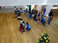 生活科の学習で2年生が「おもちゃづくり」をしました。今日は1年生を招待していっしょに完成したおもちゃで遊びました。ヨーヨーやヨット車などいろんな種類のおもちゃのブースがが体育館いっぱいに設けられ1年生がそれぞれ興味のあるブースに行って楽しんでいました。今の2年生も去年は招待される側だったのに今回は1年生に教えてあげる側になって1年間の成長がうかがえました。1年生はお土産を手に嬉しそうに教室に帰っていきました。2学年250名強で活動しても窮屈にならない本校の体育館の広さはありがたいです。(教頭 米澤)
