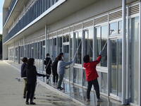 本日で後期前半が終わりました。今日の午前中は晴れたり雪が降ったりの繰り返しでしたが、子ども達が帰る頃には雪が止んでいたようでよかったです(子ども達は雪の中帰りたかったみたいですが)さて、子ども達が下校した後の学校では小学校・中学校の職員合同で職員作業(大掃除)を行いました。日頃気になりながらなかなか掃除できないところをみんなで掃除することができました。職員室も含めて1階の窓もきれいになって気持ちよく新年が迎えられそうです。(教頭 米澤)