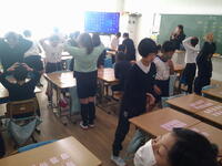 3年1組の教室で、主幹教諭の下山先生による道徳の授業がありました。今回は今週、来週かけて3年生の全学級で道徳の授業を実施される予定です。3年1組の子ども達もいつも楽しく理科の授業をしている先生の道徳の授業とあってたくさんの子どもがはりきって参加していました。今後授業がある学級もあるのであまり内容にはふれませんが、子ども達が興味を引く話題を準備されしっかり考える授業が展開されていますので今後授業がある3年2組、3組、4組のみなさんも楽しみにして下さい。(教頭 米澤)
