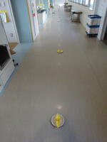 本日3年生では学年集会をしましたが、その中で廊下の歩き方について話がありました。3年生では、みんなが廊下の歩き方を心がけるように廊下の中心に「折り鶴」を置く取組を始めるとのことでした。集会のあと早速廊下に折り鶴が並べてありました。子ども達は折り鶴を踏まないように走らず右側歩行を心がけていました。(教頭 米澤)