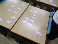 ②同じ色の20枚の札を10枚ずつに分けてお互いの机に並べます。