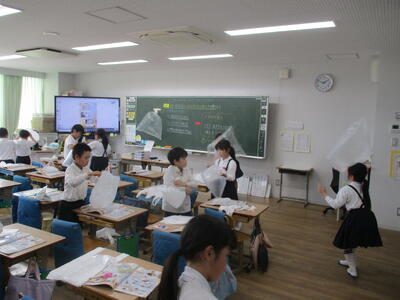 6年2組のみ多目的室で授業を受けました(1組と3組はオンライン配信により、教室で受けました)。