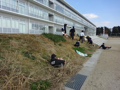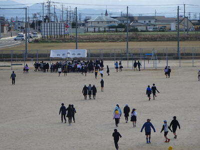 本来は、中学生が鬼役予定だったそうですが、途中から中学生を高学年が追いかけるという逆バージョンでも楽しんでいたようです。延期した1・2年生は来週月曜日(20日)に行います。