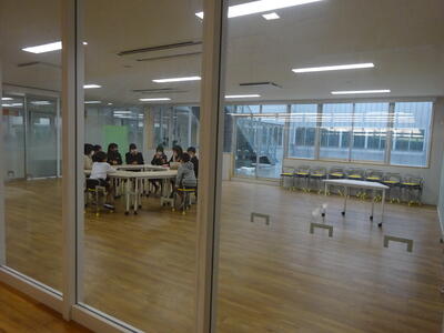昼休み時間の4年生前にある小多目的室は、さながら大企業の会議室の様相です。机を円形に並べ直して、4年2組の子ども8名が何やら話あっています。この8名は、2組にある8つの会社(たん生日会社、マジック会社、DIY会社、イラスト会社、新聞会社、アルバム・思い出会社、遊び・ジェスチャー会社、イベント会社)の代表者で、明日、行われれるクラスでのクリスマス会について最終の打合せをこの後、担任の桑原先生と行うとのことでした。
