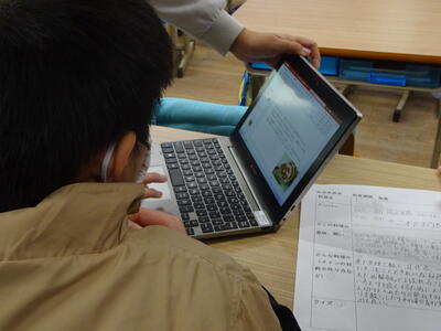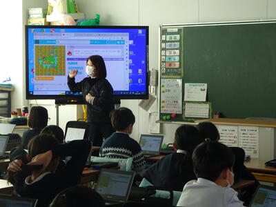 お昼の休憩時間には、昼食を兼ねた先生方のスタート会を低学年の先生方を中心に開かれました。合志楓の森小にちなんだ10問クイズに、先生方はそれぞれのスマホなどの端末を使って回答し、正解者がリアルタイムで表示されるというがアプリを使ったゲームを企画してくれました。ここでもICTがしっかりと活用されています。先生方からは、「クラスで子どもたちとも使える」との声が聞かれるほど盛り上がりました。楓の森小の先生方のすごさです。