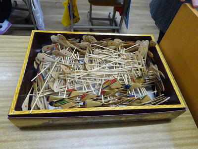 トイレットペーパーの芯は、教育活動指導員の田中先生が数ヶ月?かけて使ったものをこの日のために袋いっぱい持ってきてくれていました。