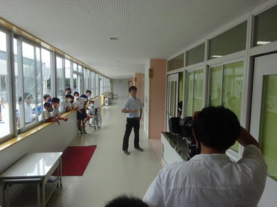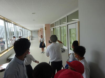 2年生が「せんぱい」として、1年生に学校を案内してくれました。2年生はこの日のために、グループに分かれてルートや案内する教室の下見や説明する内容などを考えてきました。