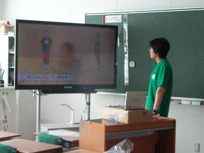 今日は、5年生4クラスを対象に実施してもらいました。毎年、水難事故で1000名近くの方々が命を落とされているという話から、溺れている人がいた場合や自分が溺れた時の対応について説明がありました。