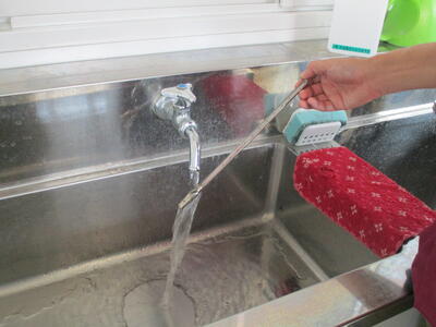 保健室の山下先生は、出勤後に水道水の残留塩素の測定が毎日ルーティーンとなっています。
