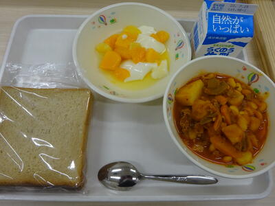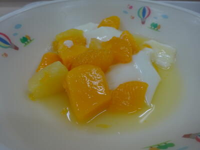今日の給食メニューの一つ「フルーツあんにん」には、合志市産のマンゴーが使われていました。子どもたちもいつも以上においしくいただいているようでした。給食の食材は、合志市産や熊本県産などできるだけ「地産地消」の食材を使っています。