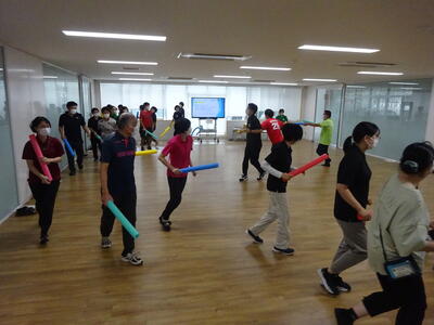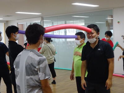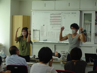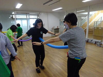 発達性協調運動障害の疑似体験では、先生方も軍手をはめて、紙をめくってみたり、折ってみたり、財布からお金を取り出してみたりすることで、普段とは違うやりづらさを体感しました。そうした際の財布を大きくしてみる、形を変えてみるなどの環境調整を行うことで、スムーズにいくことも改めて理解できました。