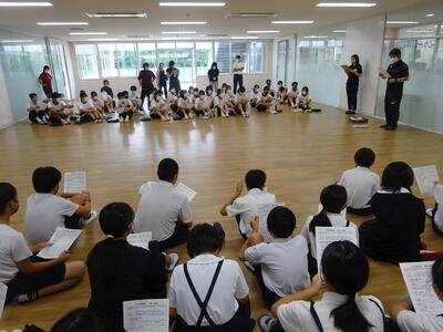 合志楓の森中学校で行われた蒲島知事の知事出前ゼミに、6年生も参加をさせていただきました。中学生と一緒に蒲島知事の「逆境の中にこそ夢がある」というテーマでの講話が聞けたことは、大変ありがたく思います。