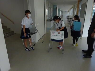 昨日からの線状降水帯による雨を考慮して、昨夜から様々な対策をとられていたようです。早朝から雨合羽を着た中学校の先生方が送迎の車の誘導をされたり、生徒の健康観察をされたりと楓の森中の先生方のチームワークが発揮されていました。