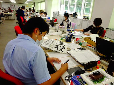 放課後、3階の中学校の教室では、英語検定が行われていました。中学2年生と3年生は全員(県・市等からの補助)、中学1年生は希望者とのことでした。今回は4級から準2級までが実施され、それぞれの教室での受検でした。